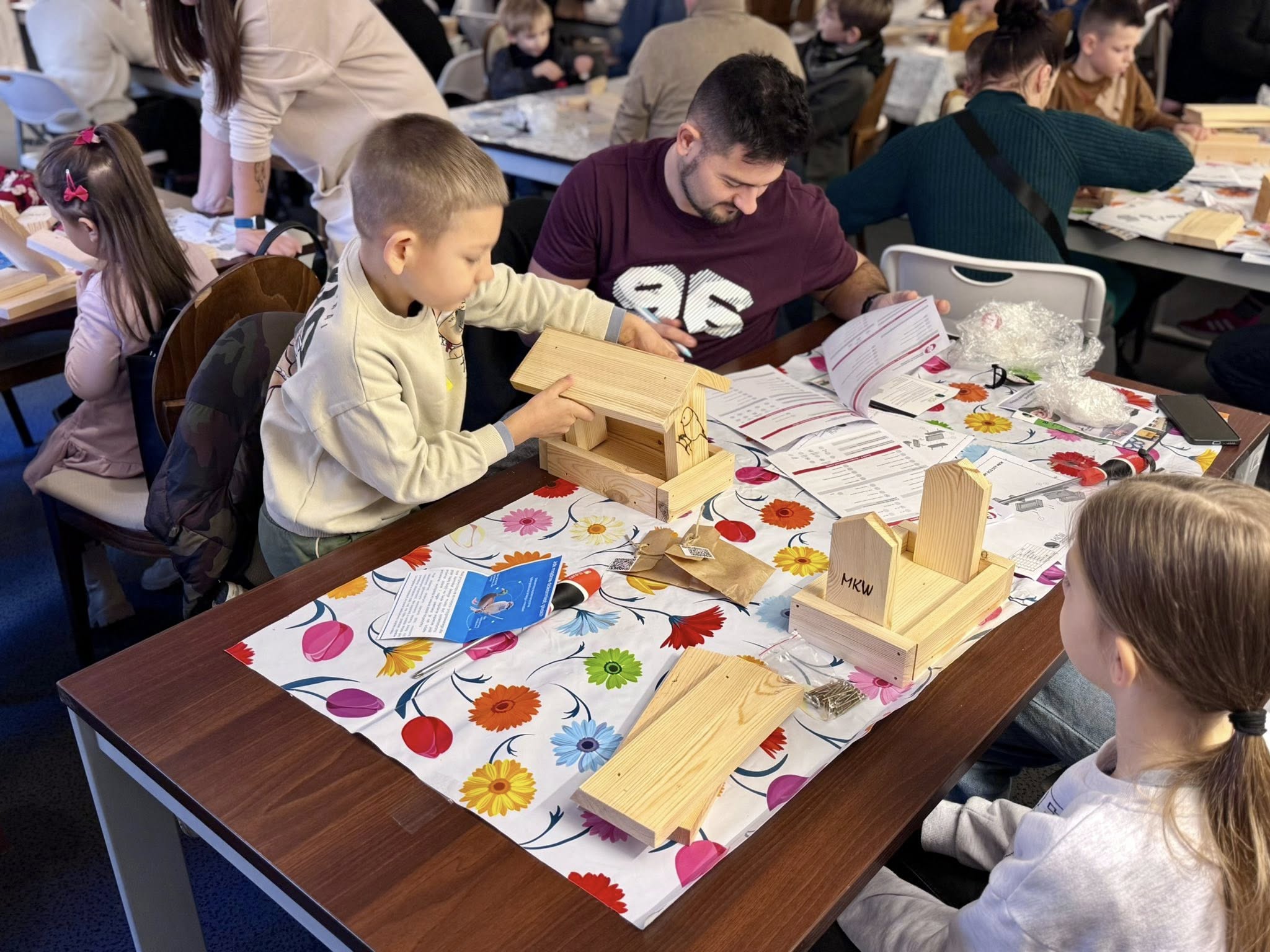 Mamy nadzieję, że wspólne majsterkowanie dostarczyło Wam dużo satysfakcji, a własnoręcznie wykonane karmniki staną się prawdziwą stołówką dla wielu ptaków w naszym mieście. Dziękujemy za Wasze zaangażowanie, kreatywność i świetną atmosferę podczas wydarzenia.